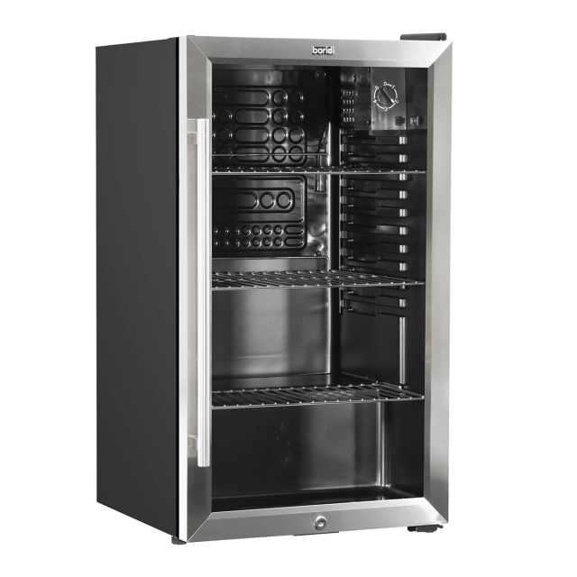 The Baridi DH31 is the perfect compact cooling solution for homes, bars, or smaller commercial spaces. This premier 85L under-counter fridge boasts direct compressor cooling technology, delivering consistent temperatures between 3-10°C, adjustable to your needs with a built-in thermostat. The energy-efficient double glazed door provides superior insulation while allowing for easy visibility of your drinks and snacks. Inside, you’ll find three removable wire shelves for flexible storage, an internal light for convenience, and even a built-in security lock for peace of mind.