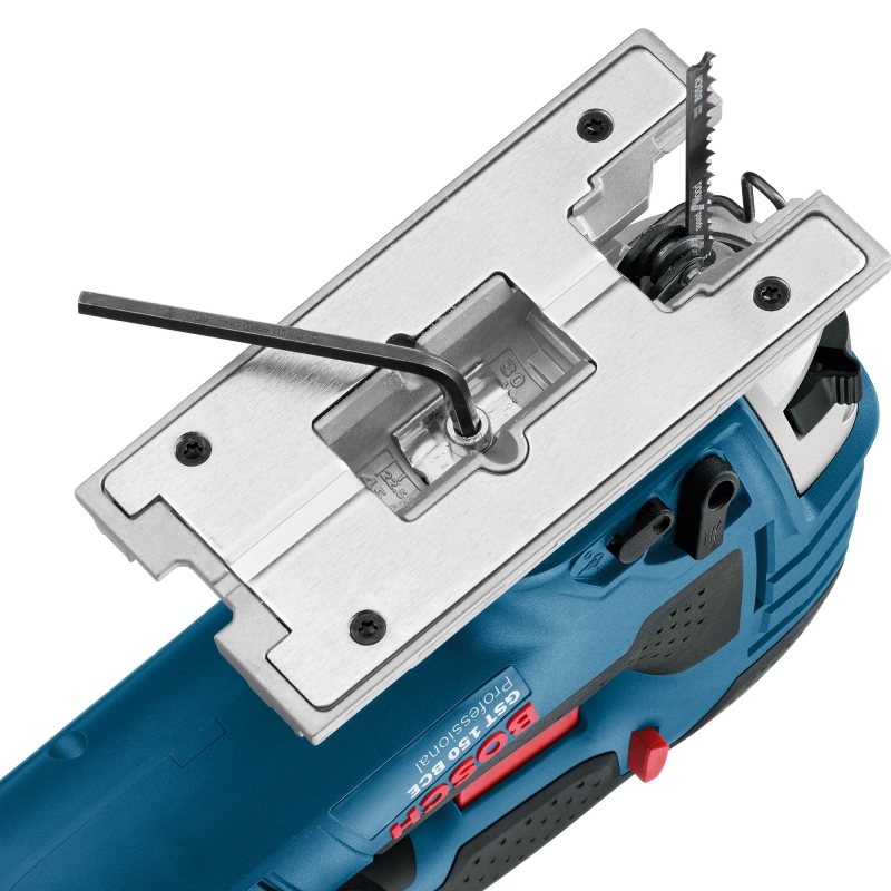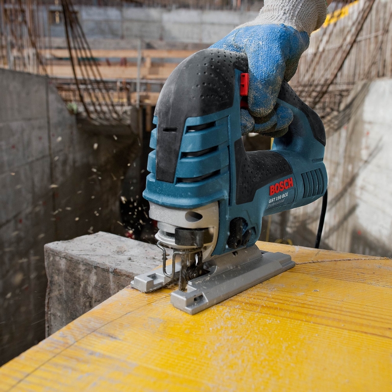 The GST 150 BCE Professional is a corded, robust jigsaw for tough applications. Its bow handle with variable speed trigger makes the tool easy to manoeuver, resulting in smooth handling during operation. The jigsaws bend-resistant sole plate is extremely robust, delivering high performance in even the toughest jobs. Its reliable 780 W motor and constant speed deliver cuts also in the hardest materials such as thick beams.