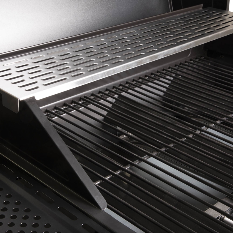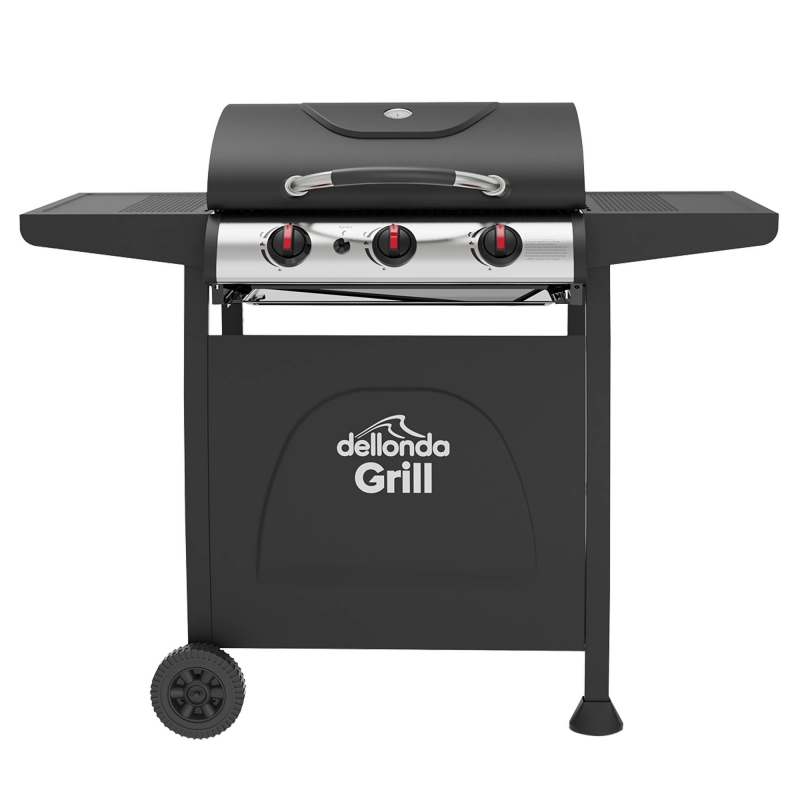Gas BBQ with three stainless steel burners. Built-in thermometer enables you to easily keep track of your cooking temperature. Piezo ignition ensures a safe and easy start-up every time. High quality steel cooking grates with a gloss enamel coating. Features two side shelves giving extra room for preparation. Warming rack frees up space on the grill whilst keeping your food warm after cooking. Supplied with regulator and hose assembly for use with propane patio gas bottles. Features two 6″ polyurethane wheels for easy manoeuvrability. Product Size (W x D x H): 1220 x 570 x 980mm. Some simple assembly is required.