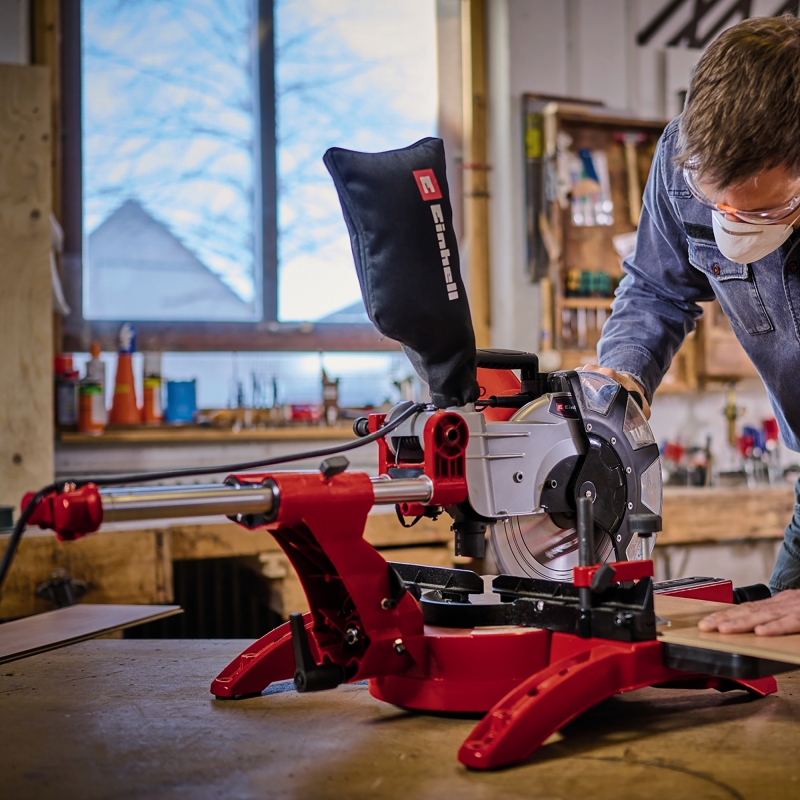 The Einhell TC-SM 2534/1 Dual is a versatile miter saw for wood, plastic, and laminate cuts. It features a tilting saw head for bevel cuts, a laser for precise alignment, and a rotating table for angled cuts. The innovative sliding mechanism allows for extra-wide workpieces. Workpiece supports, clamps, and stops ensure safety and accuracy. It includes a dust bag and extraction system for a clean workspace, and a transport brace for easy portability.